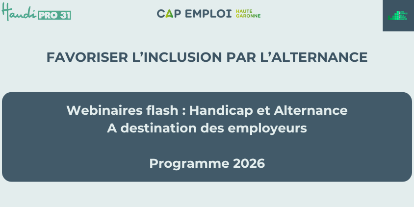 Cap emploi Haute-Garonne propose, de février à septembre, une série de webinaires flash dédiés au handicap et à l’alternance, à destination des employeurs privés et publics souhaitant concilier performance, inclusion et anticipation des compétences de demain.